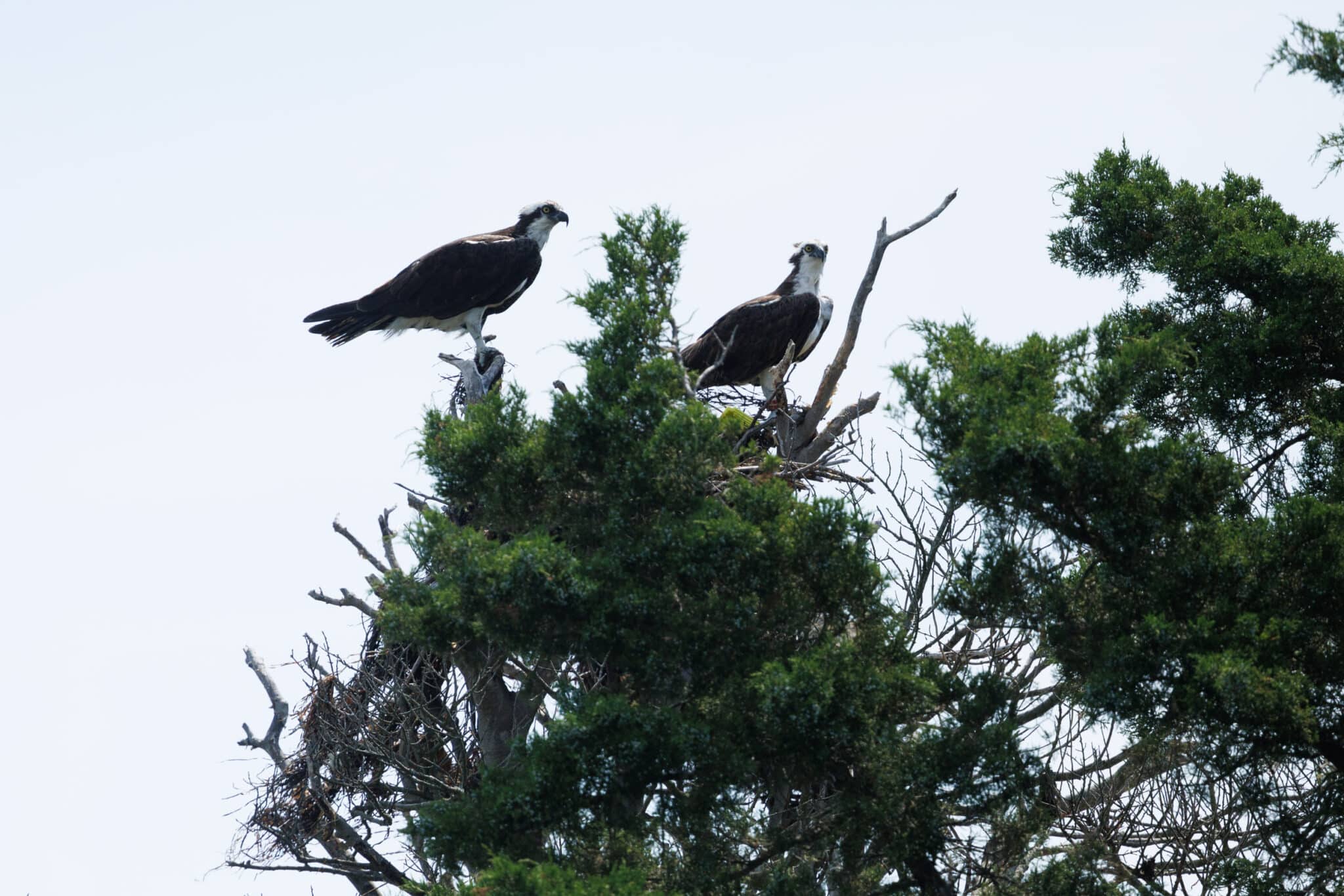 Three natural osprey nests within Sedge Island WMA. July 2024.