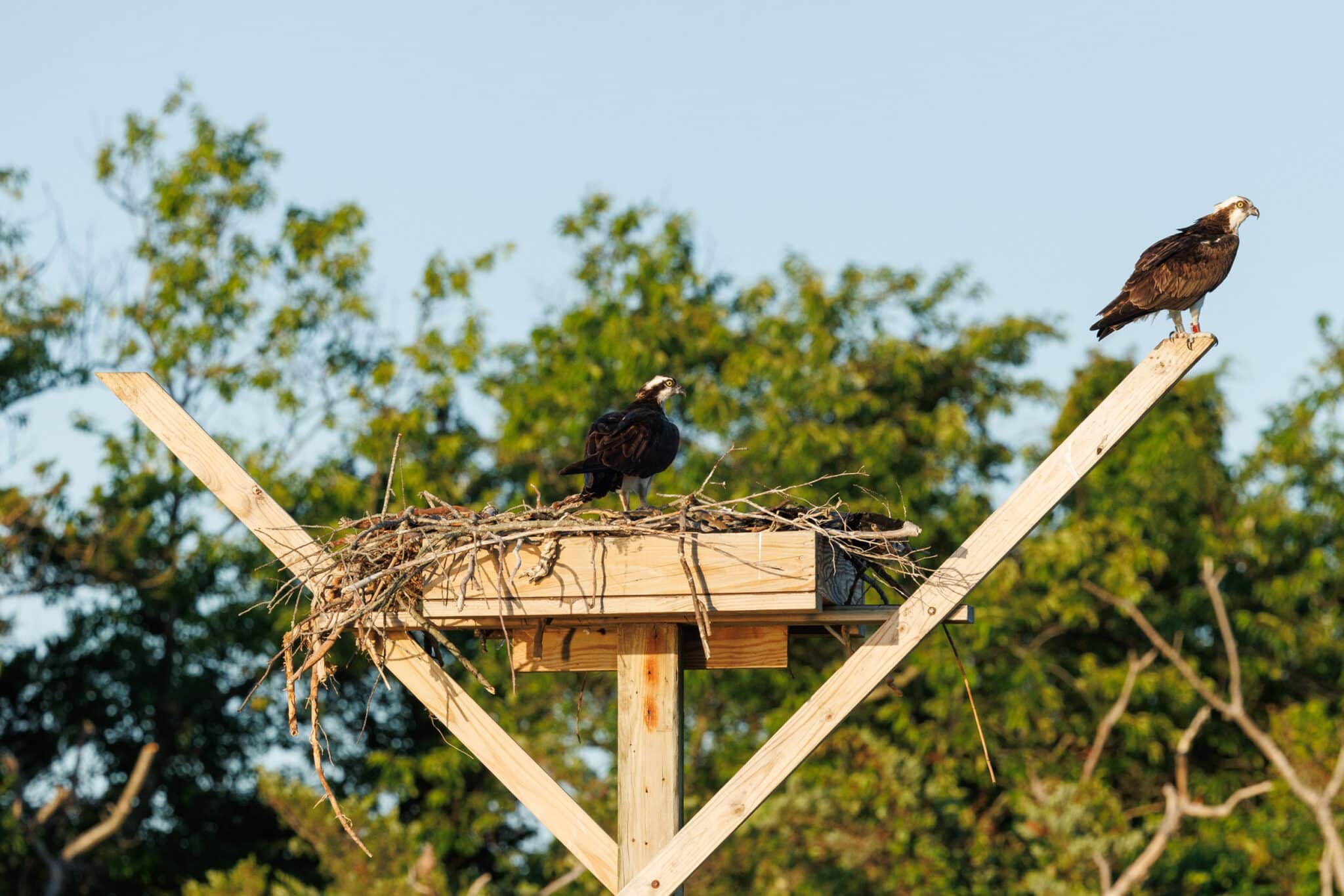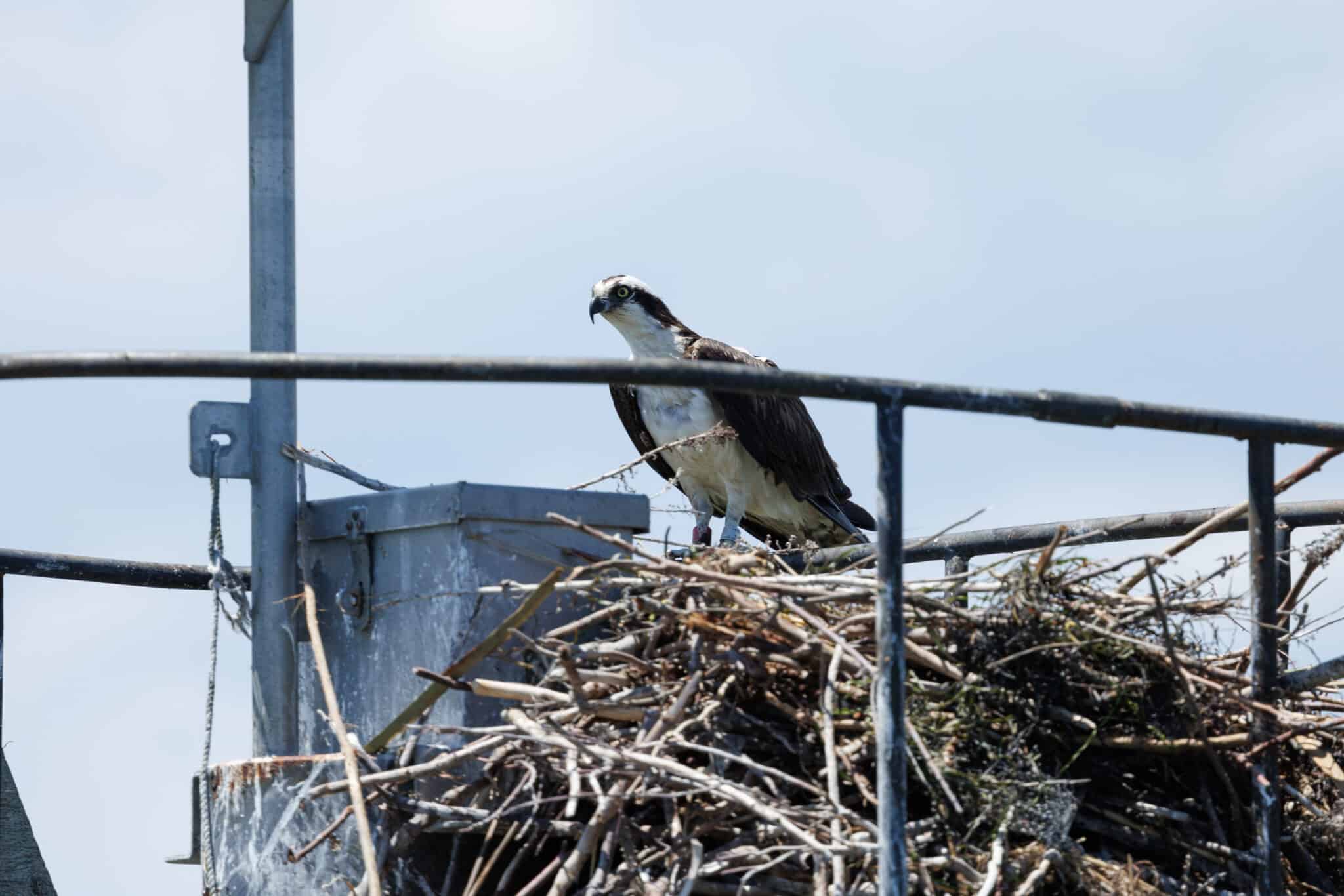 Their recovery has been quite remarkable. With an estimated 600 nesting pairs throughout the state, our ospreys are in a much better position today. Why put so much time and effort into monitoring a seemingly healthy population? Even though their population is much larger than it was decades ago, ospreys still face a variety of threats that jeopardize their ultimate survival. It’s commonly known that ospreys face very high mortality rates in their first year of life. Before even leaving the nest their young are so vulnerable. They can fall or be blown out of the nest, predated by raccoons, crows, or eagles, killed by their own siblings, or die from starvation. After they fledge, then they need to learn to find and catch prey and avoid power lines and wind turbines. Then they need to learn to migrate south and avoid being shot in the process. Once they find a suitable wintering site, then they remain in the same area for the next two years. Then they return to their natal areas to find a suitable nest site and start their own osprey family!