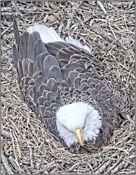 Rest well DFF3! When will the next egg arrive? They can arrive 2-4 days from each other. How many will she lay this year! Keep watching viewers, the eagles will let us know.