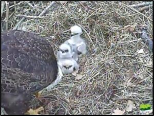 Raptor Resource Project had an article about intruders on the nest. It is an interesting read. Nest Intruder (One of the videos in this blog is from Duke Farms. Long time viewers of the nest might remember the unfortunate hawk who landed on the nest and became lunch. My 4th graders could not watch the video enough! You may find it disturbing.)