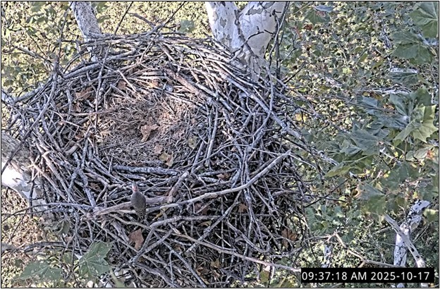 November was a busy month for visitors at the nest. Late in the day both adults were on the nest moving material around. Turkeys could be heard clucking.
