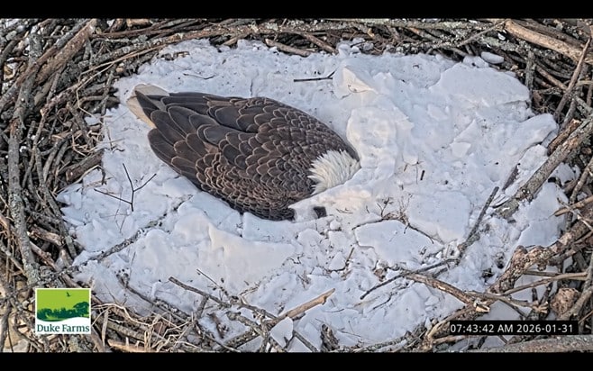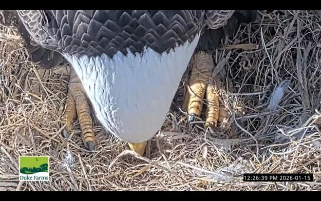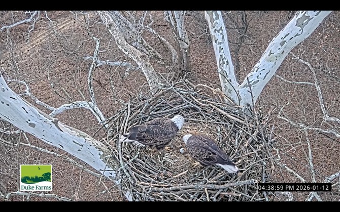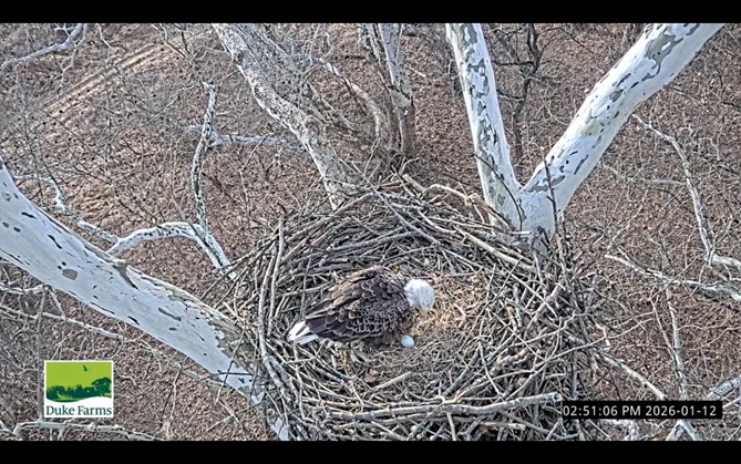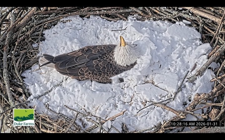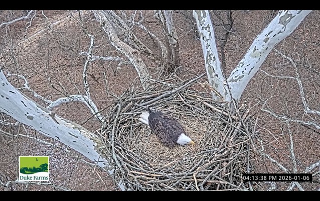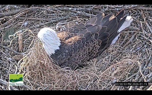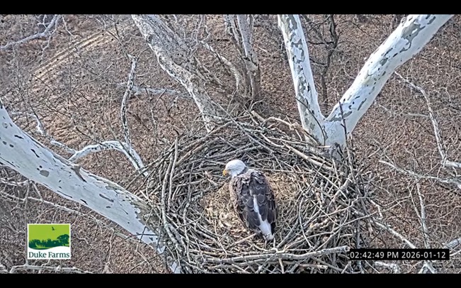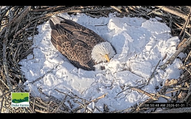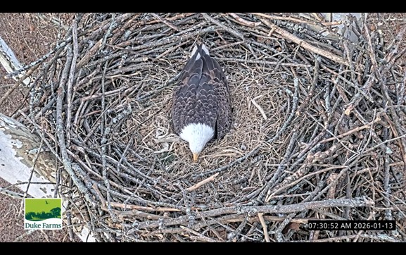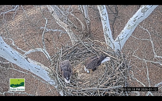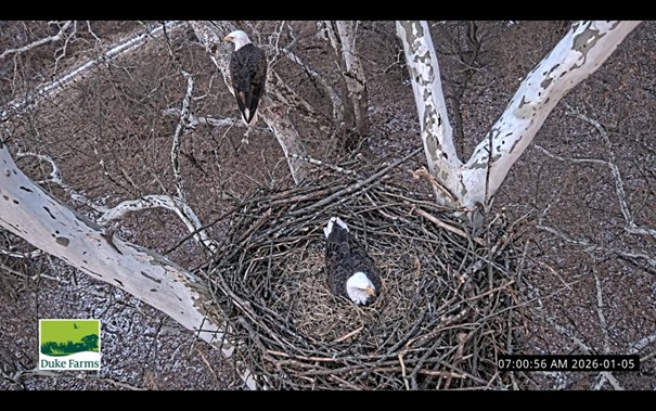 Good news – Duke Farms Bald Eagles are incubating 2 eggs for the 2026 nesting season. Will there be another? Time will tell.