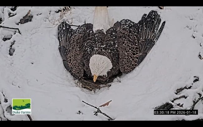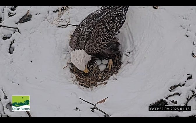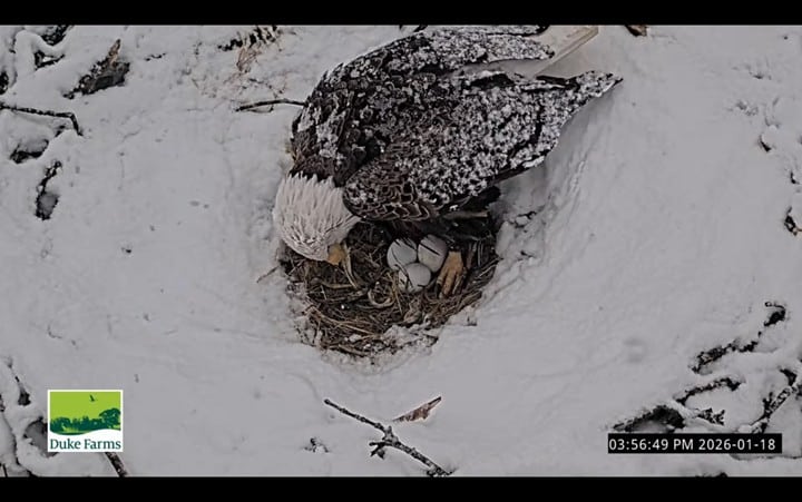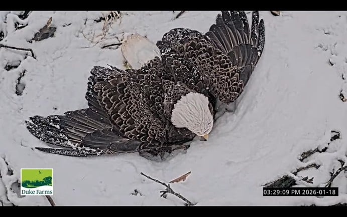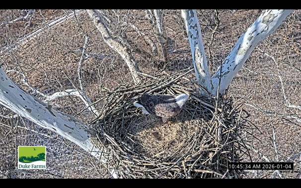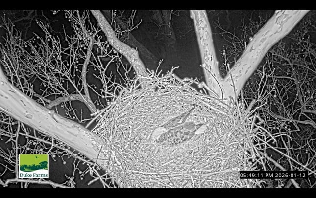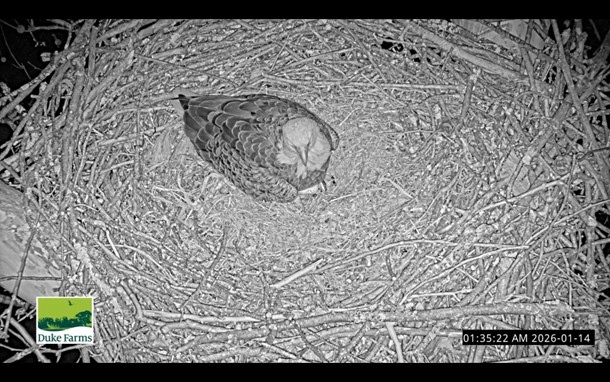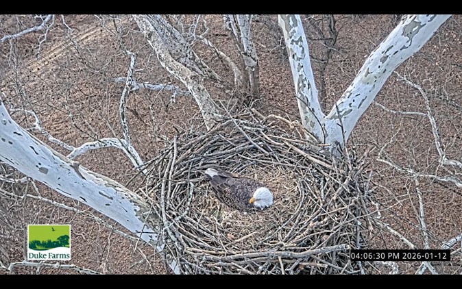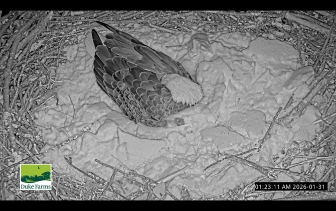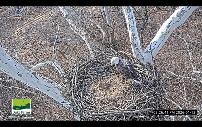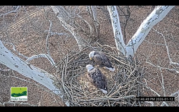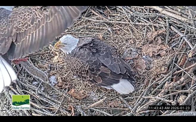 Good news – Duke Farms Bald Eagles are incubating 2 eggs for the 2026 nesting season. Will there be another? Time will tell.