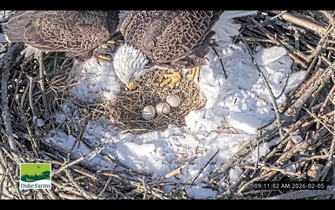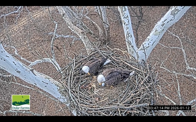 Good news, the Duke Farms pair is incubating. Incubation was confirmed January 18th.