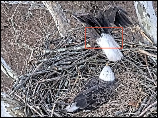 With many visitors this year, including one with a white head and tail, it is nice to know who our pair is when viewing the cam. Now, onto signals that eggs may be coming soon.